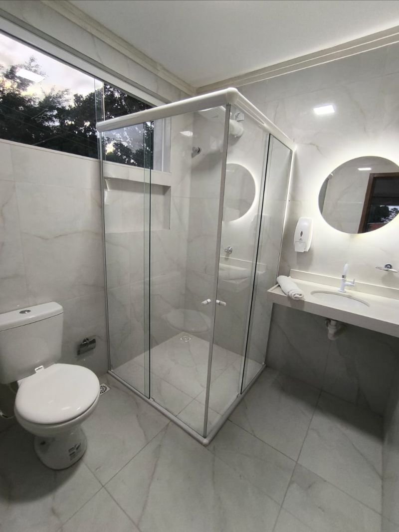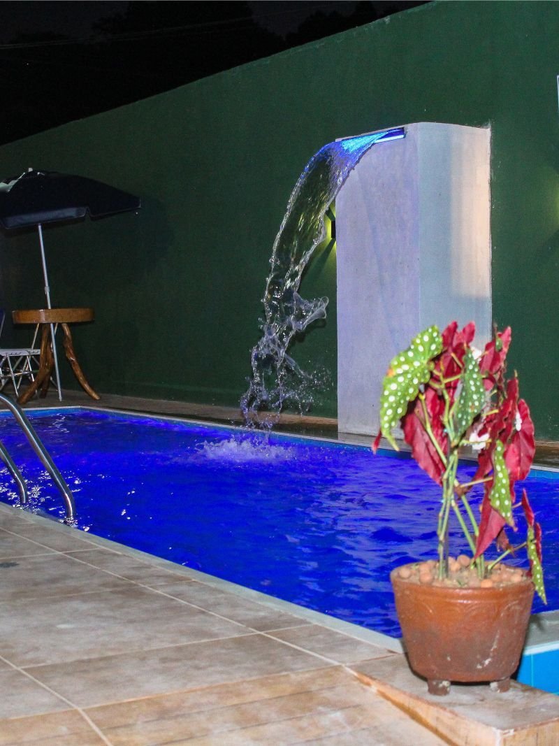 Possui estacionamento privativo, quartos com acessibilidade para pessoas com deficiência física e idosos, um café da manhã bem recheado, chá da tarde, ar condicionado, chuveiro quente, smart tv, frigobar e piscinas adulto e infantil.